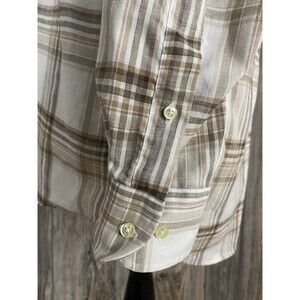 Jos. A. Bank Mens M Traveler's Collection Linen Shirt Beige Plaid Coastal Preppy