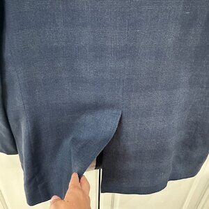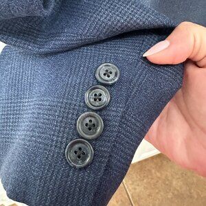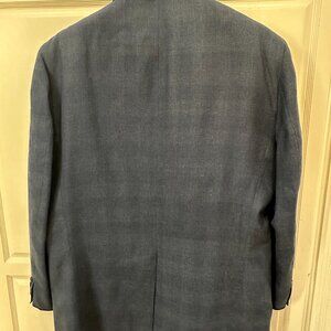 Jos A. Bank Men's Navy Blue Plaid Suit Jacket Size 48L Sports Coat Linen Wool