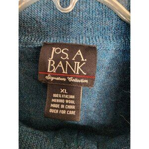 Jos. A Bank Men's Pullover Quarter Zip Sweater XL Italian Merino Wool Ocean Blue
