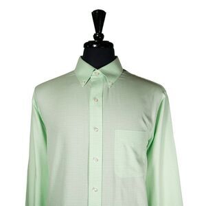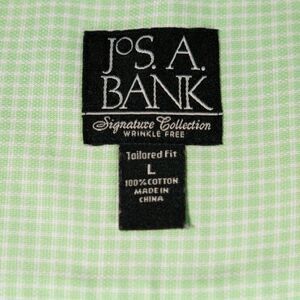 Jos. A. Bank Mens Shirt Button Up Green Check Cotton Non Iron Tailored Fit Large