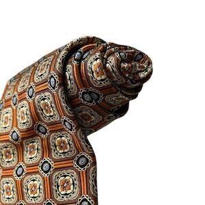 Jos A Bank Mens Signature Collection Orange Silk Geometric Neck Tie 59" x 3.5"