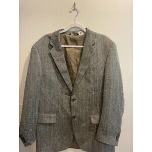 Jos. A. Bank Mens Silver Gray Blazer 42L Herringbone Single Breasted Long Sleeve
