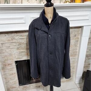 Jos. A. Bank Men's Tailored Fit Car Coat Size Large Charcoal Gray Wool Blend