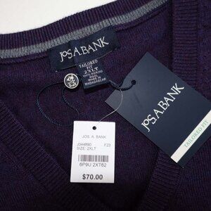 Jos. A. Bank Men's Tailored Fit V-Neck Sweater Size 2XLT NWT Purple Merino Wool
