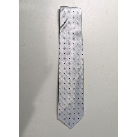 The Jos. A. Bank Men's Tie in Silver is a classic and stylish accessory for men. Made from 100% silk with a woven geometric pattern, this designer tie adds a sophisticated touch to any outfit. The silver color and classic width make it versatile for various occasions, making it a timeless addition to any man's wardrobe.