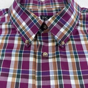 Keywords: Jos. A. Bank, Traveler Collection, Plaid Shirt, Button Down, Long Sleeve, Dress Shirt, Casual Shirt, Men's Fashion, XXL, Extra Extra Large, Purple Plaid, Cotton Shirt