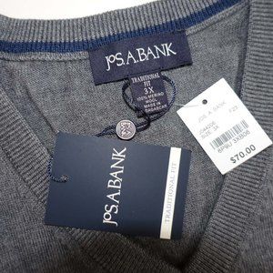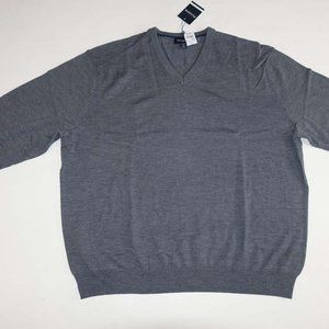 Jos. A. Bank Men's V-Neck Sweater Size 3X NWT Gray 100% Merino Wool Pullover