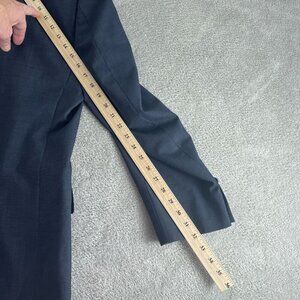 This Jos. A. Bank blazer, crafted from 100% wool, offers a classic navy blue look with a two-button closure suitable for a formal wardrobe.