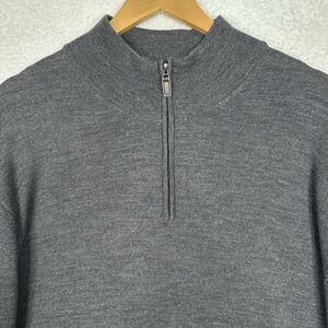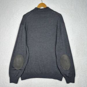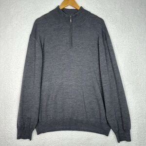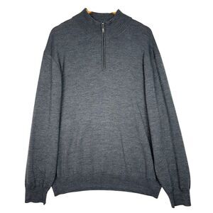 Jos A Bank Men’s XXL Sweater 100% Merino Wool Gray 1/4 Zip Suede Elbow Patch
