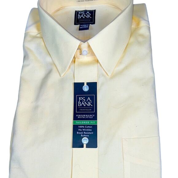 Elevate your wardrobe with this Jos. A. Bank men's dress shirt. Featuring a classic yellow hue, this shirt is perfect for both formal and casual occasions. Enjoy the tailored fit and wrinkle-resistant fabric for all-day comfort and style.