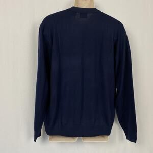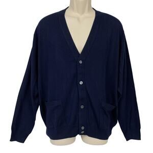 Jos A Bank Merino Wool Cardigan Sweater Mens Medium Navy Blue V Neck Grandpacore