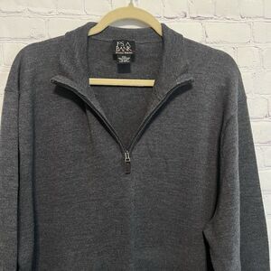 Jos A Bank Merino Wool Sweater Men’s XXL, 2XL 1/4 Zip Pullover Gray Long sleeve