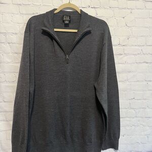 Jos A Bank Merino Wool Sweater Mens XXL, 2XL 1/4 Zip Pullover Gray Long Sleeve
