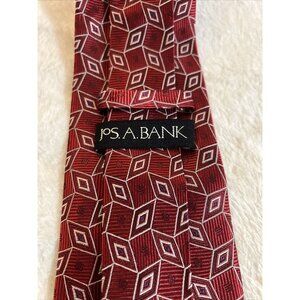 Jos. A. Bank Necktie Men's Geometric Red Silk 3.5 Inches Wide Classic Diamond