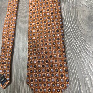 Jos. A. Bank Orange Silk Tie with Yellow and Blue Geometric Pattern 58”