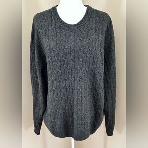 Jos. A Bank Oversized Dark Gray Cable Knit Fisherman Lambs Wool Sweater