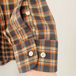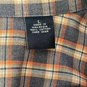 Fall in love with this beautiful plaid button down shirt in shades of orange and gray grey from the Traveler’s Collection luxury designer brand Jos. A. Bank.