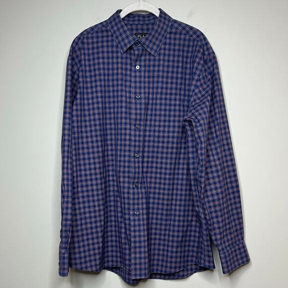 Jos. A. Bank Plaid Traveler Button Down Shirt Size L Tailored Fit
