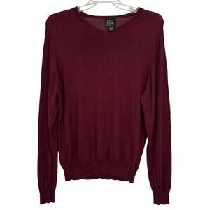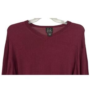 Jos. A. Bank Pure Silk V-Neck Sweater Burgundy Red Knit Pullover Size L