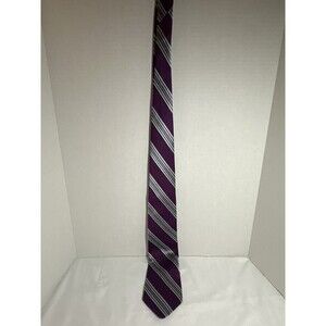 Elevate your style game with this Jos A Bank designer tie. Made in Italy with 100% silk material, this tie features a classic width and a stunning purple and white striped pattern. Perfect for any formal occasion, the tie is a must-have accessory for any fashion-conscious man. The brand Jos A Bank is synonymous with quality and this tie is no exception. Add a touch of sophistication to your wardrobe with this exquisite piece.