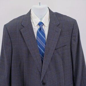 Jos A Bank Regal Fit Wool Gray Black Houndstooth W/ Purple Blue Windowpane 50L