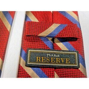 Jos. A. Bank Reserve 100% Silk Tie - Red Blue Gold Diagonal Stripe Pattern
