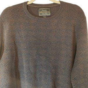 Jos A Bank Reserve Lambs Wool Crewneck Sweater Brown & Black Herringbone Large
