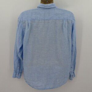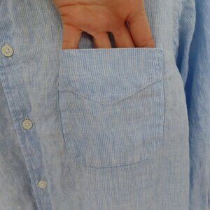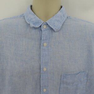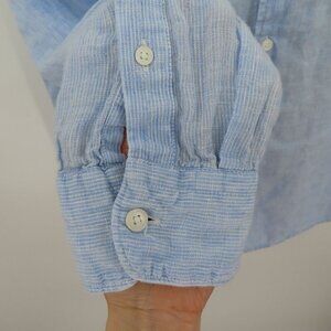 Jos A Bank Reserve Mens Large All Linen Blue Striped Collared Long Sleeve Shirt