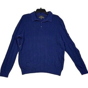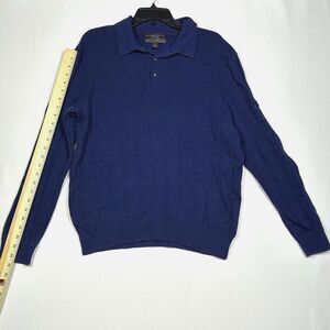 Jos A Bank Reserve Mens Large Blue Sweater Silk Long Sleeve Sweater Silk Blend