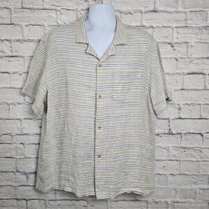 Jos. A. Bank Reserve Shirt Mens XXL 100% Linen Stripe Short Sleeve Button Down