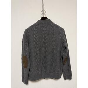 Jos A Bank Reserve Sweater Mens XL Gray Wool Button Front Elbow Patch Cardigan