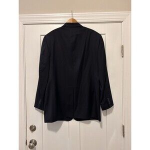 Elevate your style with this navy blue wool sport coat blazer suit jacket from Jos. A. Bank. This blazer is perfect for any occasion, whether it be business, casual, party, or travel. The single-breasted jacket features a two-button front button style and a four-button sleeve button style, along with a notch lapel and a single-vented jacket vent style. The blazer also includes inner pockets for added convenience. The solid pattern and designer theme make this blazer a must-have for any fashion-forward man.