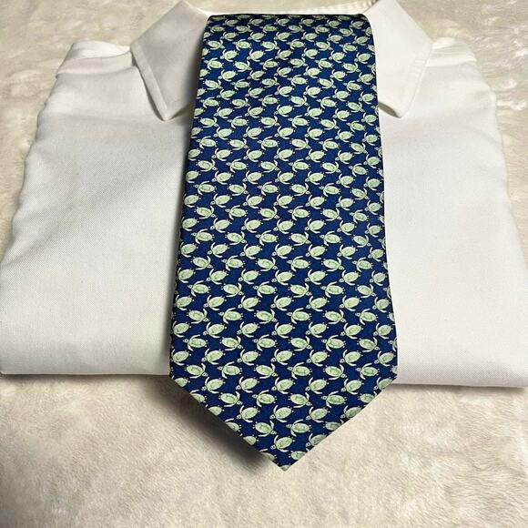 Jos A Bank Sea Turtle Silk Tie 58"x3.5" Blue & Green Eco-Friendly Animal Rescue