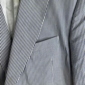 Jos A Bank Blue White Striped 100% Cotton Blazer Preppy Single Breasted Size 43R Seersucker