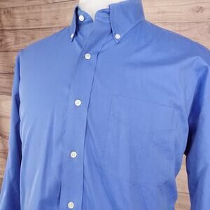 Jos A Bank Shirt Mens 17.5 35 Blue Traveler's Collection Button Down Long Sleeve