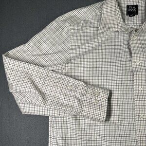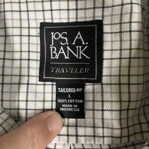 Jos A Bank Shirt Mens Large White Plaid Button Down Tailored Fit Traveler