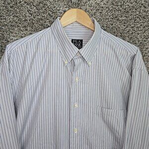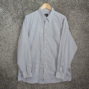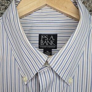 Jos A Bank Shirt Mens XL Blue Striped Button Down Travelers Cotton Pocket