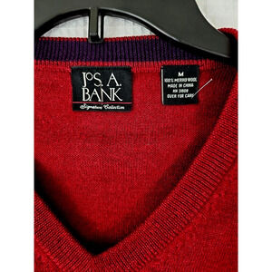 Jos A Bank Signature Collection Sweater Men's M Burgundy Merino Wool Pullover.