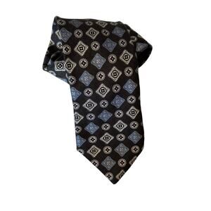 Jos A Bank Signature Collection XL Silk Tie Geometric Blue Black Made in Italy