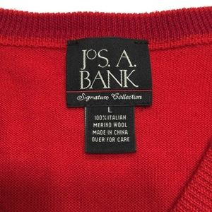 Jos A Bank Signature Italian Merino Wool Sweater Red Pullover Xmas Mens
