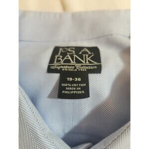 Jos. A Bank Signature Shirt Mens 19 36 Blue Herringbone 100% Cotton Long Sleeve
