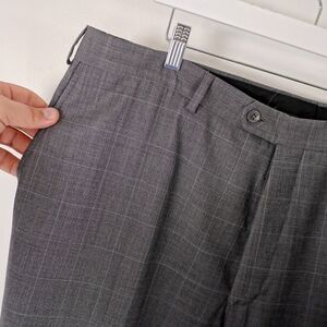 Jos A Bank Signature Tailored Fit Wool 2 Button 2 Piece Suit 44R 42/28 Gray Sharkskin W/ Blue Windowpane High Rise Flat Front Tagged 48R 43 Waist See Sizing Description