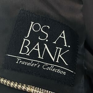 Jos A Bank Silk Wool Sport Coat Mens 42L Houndstooth Windowpane Jacket Blazer