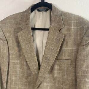 Jos A Bank Size 40L Men's Wool Silk Sport Blazer Jacket Tan Plaid Career