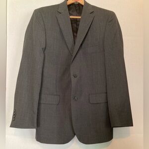 Tailored fit suit jacket features classic notch lapel styling in fine wool. Two-button jacket with side vents. 100% wool.