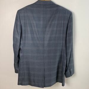 Jos A Bank Size 41L Men's Wool Sport Silk Blazer Jacket Blue Gray Plaid Career