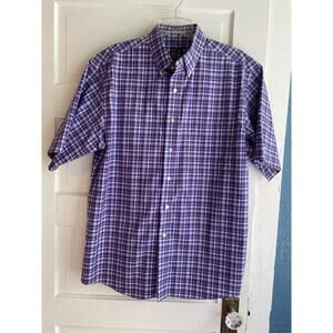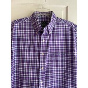 Jos. A. Bank Size Large Short Sleeve Button Front Purple & Blue Plaid Shirt