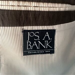 Men’s size 46 R Jos. A. Bank sport coat / blazer. Dark brown suede material. One small seam is loose on shoulder (pictured) but otherwise excellent condition.