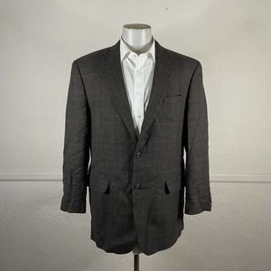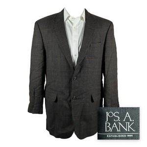 Jos A Bank Sport Coat Blazer Mens 44L Brown Plaid Flannel Soft Tweed Wool