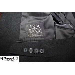 Elevate your wardrobe with the timeless sophistication of a Jos. A. Bank sport coat. Expertly tailored in a luxurious camel hair fabric, this men's blazer boasts a sleek black color and a classic two-button style. The notch lapel and four-button sleeve contribute to its elegant silhouette, making it an ideal choice for a range of occasions from business meetings to weddings.